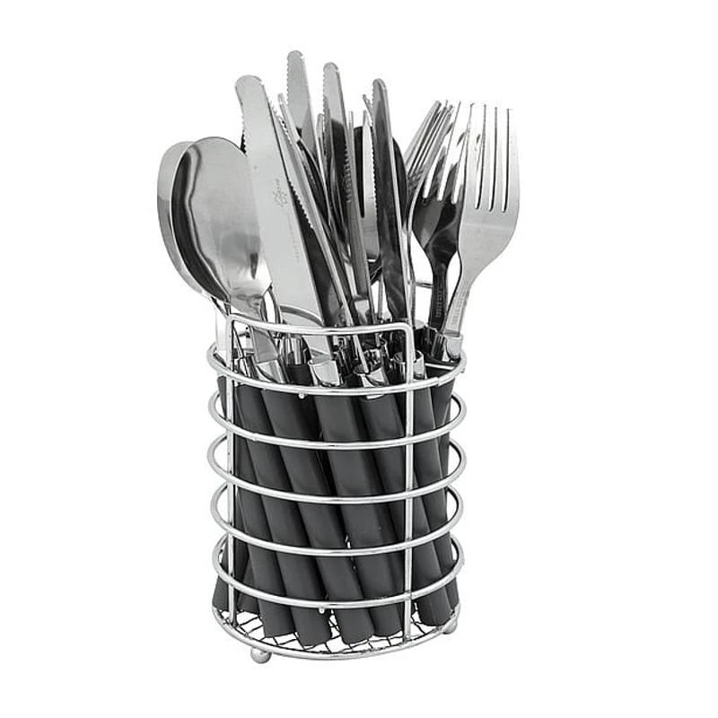 Deze 24-delige bestekset van Bo-Camp wordt geleverd in een handig mandje. De set bevat voor 6 personen een mes, vork, lepel en theelepel. De combinatie van RVS en kunststof geeft dit bestek een lange levensduur en zorgt er voor dat deze vaatwasmachinebestendig is.