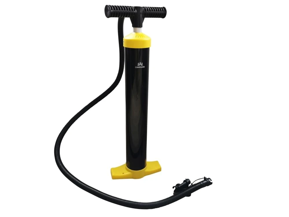 Deze handige handpomp blaast zowel lucht bij het omhoogtrekken van de hendel als bij het omlaag duwen. Een luchtbed, een bal of een zwembad zijn dan ook zo opgepompt. Naast de mogelijkheid tot lucht blazen, biedt de pomp van Campguru eveneens de mogelijkheid om het gewenste voorwerp vacuüm te trekken.