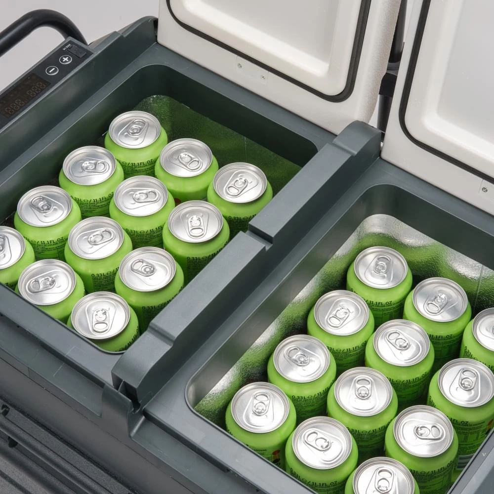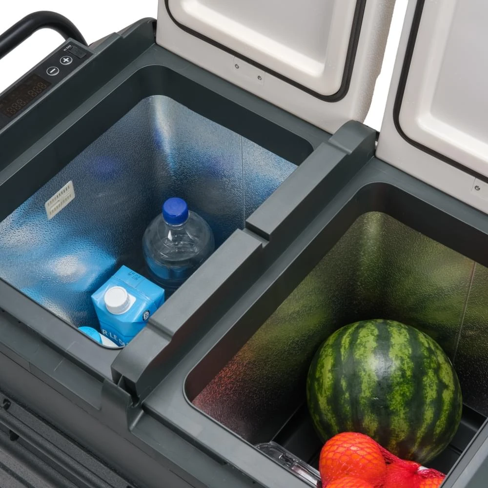 Het bijzondere aan de Fred koelboxen is dat ze niet alleen kunnen koelen, maar dat ze ook kunnen vriezen! Zo kan je zelf bepalen hoe koud je de temperatuur in de koelbox wilt hebben. Je kiest voor koelen wanneer je alleen je eten en drinken koel wilt houden. Heb je ijsjes meegenomen of andere diepvriesproducten dan kies je op het display voor vriezen. De Big Fred heeft twee compartimenten. Het is mogelijk om allebei te laten koelen of vriezen, of je laat de ene koelen en het andere compartiment vriezen. Zo simpel kan het zijn!