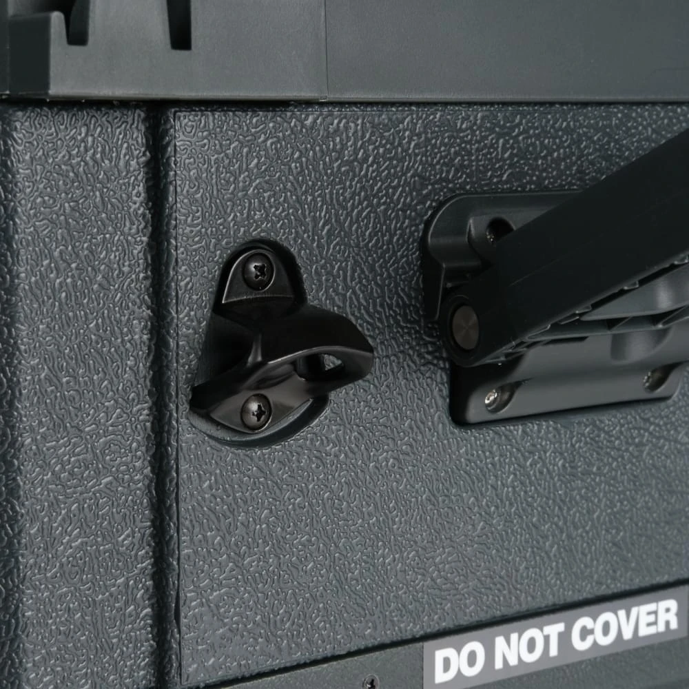 Ook in het donker kan je dankzij de verlichting aan de binnenkant van Fred zien wat je uit de koelbox pakt. Bovenop, bij het display vind je nog een USB-poort waar je dan weer je telefoon of tablet op kunt laden. Big Fred is een grote jongen en daarom heeft hij twee wielen en een beugel die je uit kunt trekken, zo is hij ook makkelijk te verplaatsen. Aan de zijkant van de koelbox vind je een flessenopener. Zet het handvat van de koelbox uit en je kan in het gat de parasol klemmen. Kan jij in de schaduw genieten van een heerlijk verfrissend drankje. Fred zorgt voor je eten en drinken en is heel rustig, de perfecte reisgenoot