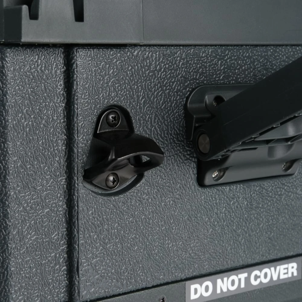 Ook in het donker kan je dankzij de verlichting aan de binnenkant van Fred zien wat je uit de koelbox pakt. Bovenop, bij het display vind je nog een USB-poort waar je dan weer je telefoon of tablet op kunt laden. Aan de zijkant van de Double Fred vind je een flessenopener. Zet het handvat van de koelbox uit en je kan in het gat de parasol klemmen. Kan jij in de schaduw genieten van een heerlijk verfrissend drankje.  Fred zorgt voor je eten en drinken en is heel rustig, de perfecte reisgenoot!Â