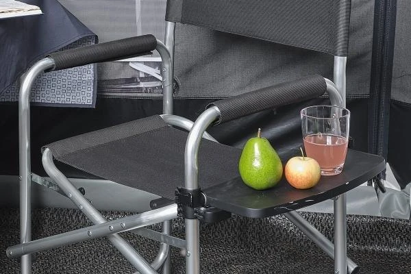 Met deze nieuwe uitvoering van de klassieke Isabella regisseursstoel is er nog meer comfort dankzij de toevoeging van de zijtafel. Ook de armleuningen hebben een upgrade ondergaan. De sidetable heeft een draagvermogen van ongeveer 5 kg, dus je kan gemakkelijk je drankje kwijt, maar ook bijvoorbeeld je telefoon of leesboek. Heb je de zijtafel niet meer nodig dan kan je deze van de stoel afhalen of je klapt hem eenvoudig weg. Ook tijdens het vervoer steekt deze niet onnodig uit en zo blijft de regisseursstoel met zijtafel van Isabella compact om mee te nemen.