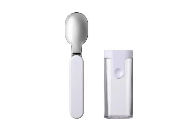Neem jij ook je lunchpot overal mee naar toe? Dan heb je je yoghurt op en moet je je vieze lepel in je tas stoppen. Mepal heeft nu de oplossing: de vouwlepel Ellipse! Deze past opgeklapt precies in het bovenste compartiment van je lunchpot. Met één simpele klik vouw je hem uit en kun je genieten van al het lekkers wat je meegenomen hebt. Je kunt de lepel ook los meenemen in de bijgeleverde cassette.