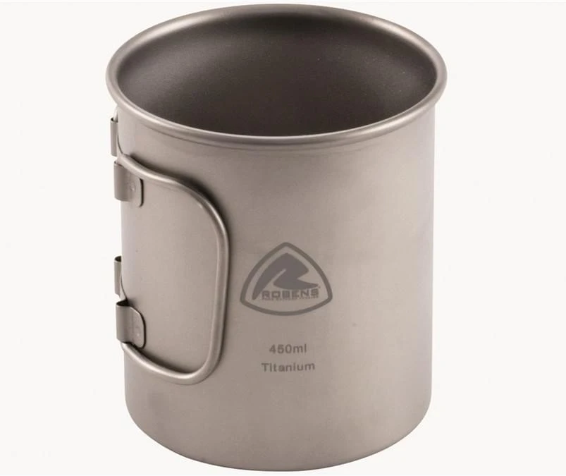 Een titanium mok is niet alleen sterk en duurzaam maar ook erg licht in gewicht. Het handvat van deze Robens mok is inklapbaar.